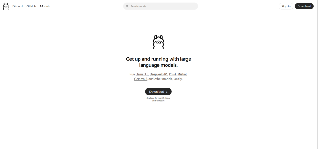 To get started, download Ollama based on your operating system by visiting its official site.